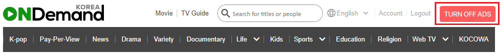 1. Login with a Free OnDemandKorea account and click on "TURN OFF ADS" located in the upper right corner of our website.
