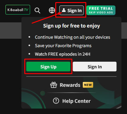 Please click on [Account], and click [Sign Up]